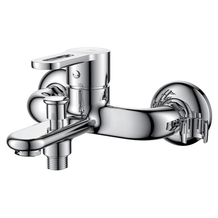 Смеситель для ванны D&K Paulinus Rhein DA1353201 с коротким изливом и душевым гарнитуром, однорычажный, на два отверстия для монтажа.
