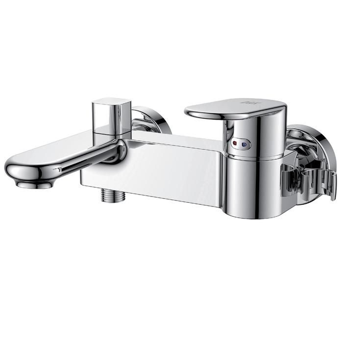 Смеситель для ванны D&K Rhein Speyer DA1313201 с коротким изливом и душевым гарнитуром, однорычажный, на два отверстия для монтажа.
