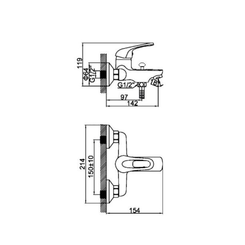 Смеситель для ванны D-Lin D130628, хром. Излив: традиционный, фиксированный.