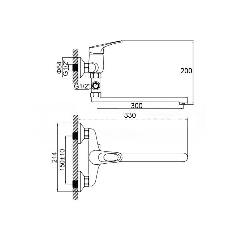 Смеситель для ванны D-Lin D140429, хром. Излив: традиционный, поворотный.
