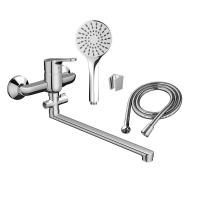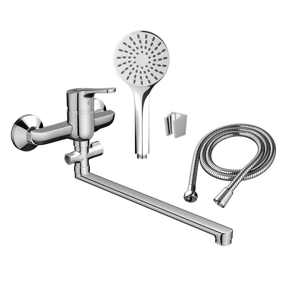 Универсальное решение для ванной комнаты - качественный смеситель для ванны и душа Norma с душевым набором и длинным поворотным изливом который позволяет использовать его как для ванны так и для рядом стоящей раковины.