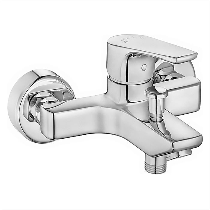 Смеситель однорычажный в цвете хром. На корпусе имеется переключатель потоков воды душ/излив, как и отверстие для подключения ручной лейки. Монтируется на стену. Подойдет для ванных комнат в современном стиле. Гладкая полированная поверхность смесителя обладает приятными тактильными ощущениями. Покрытие устойчиво к помутнению и царапинам, сохраняет первоначальный внешний вид на протяжении всего срока службы.