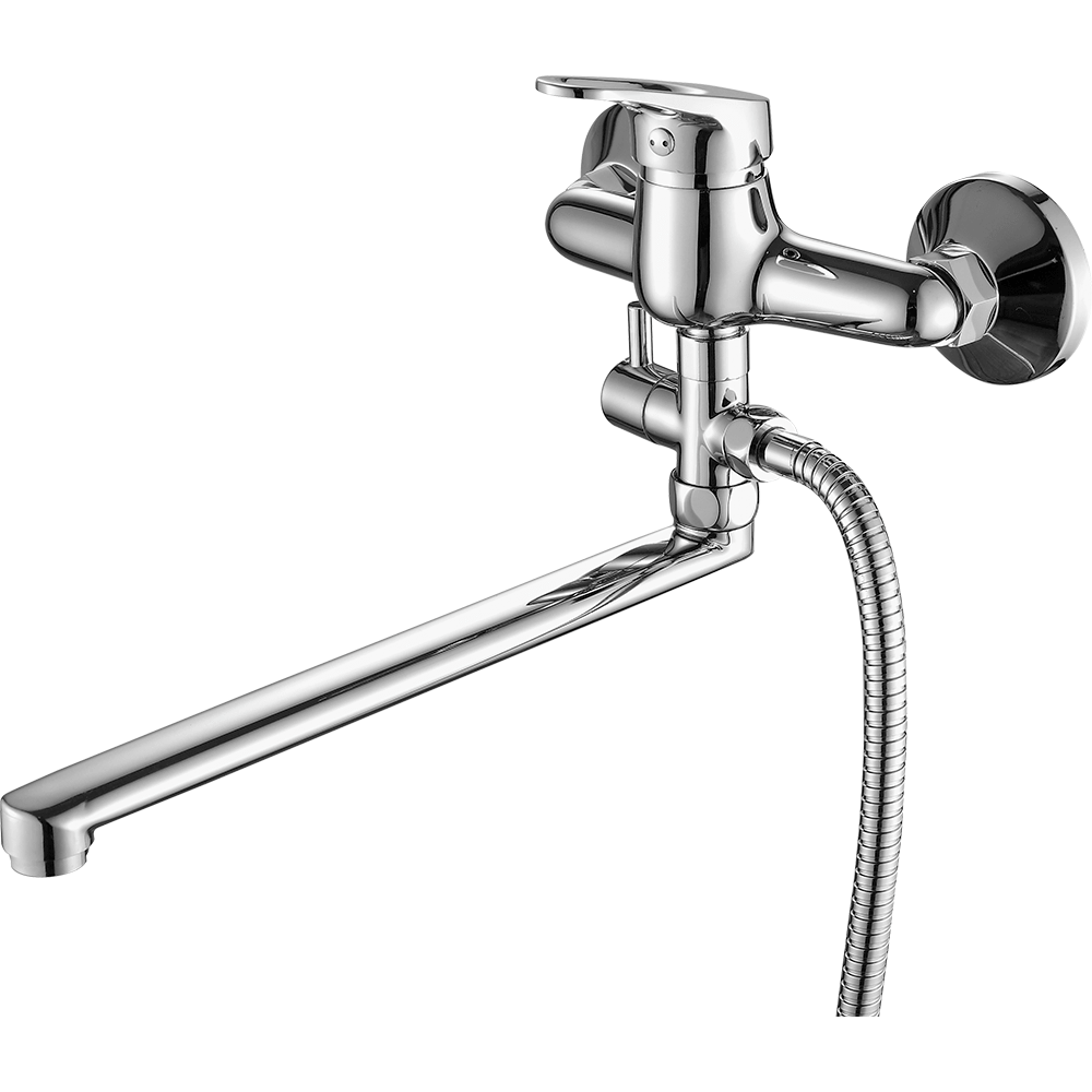Смеситель для ванны FASHUN A2113, хром. Материал: латунь. Вращение излива: поворотный. Управление: рычажное. Душевой гарнитур в комплекте: да.