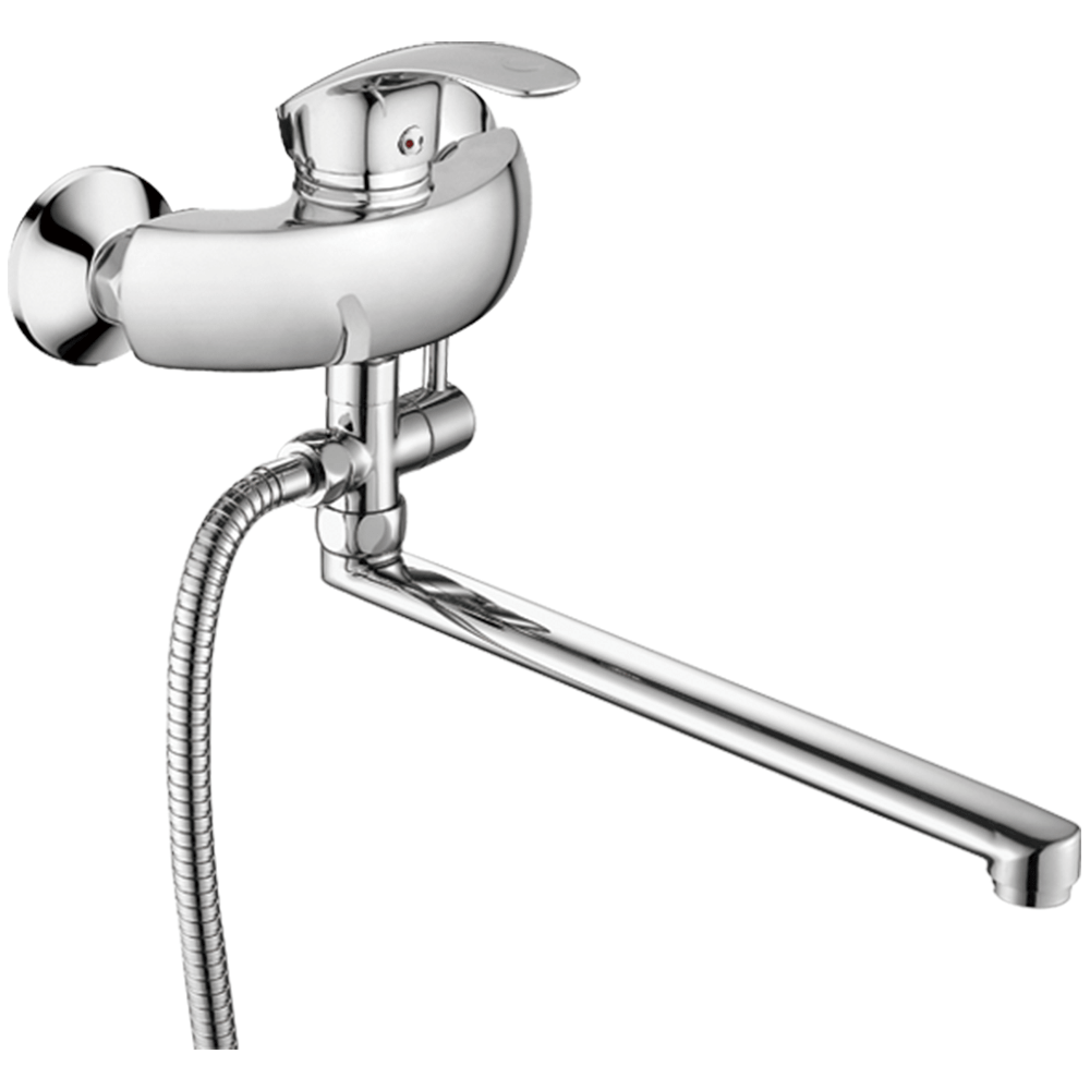 Смеситель для ванны FASHUN A2121, хром. Материал: латунь. Вращение излива: поворотный. Управление: рычажное. Душевой гарнитур в комплекте: да.