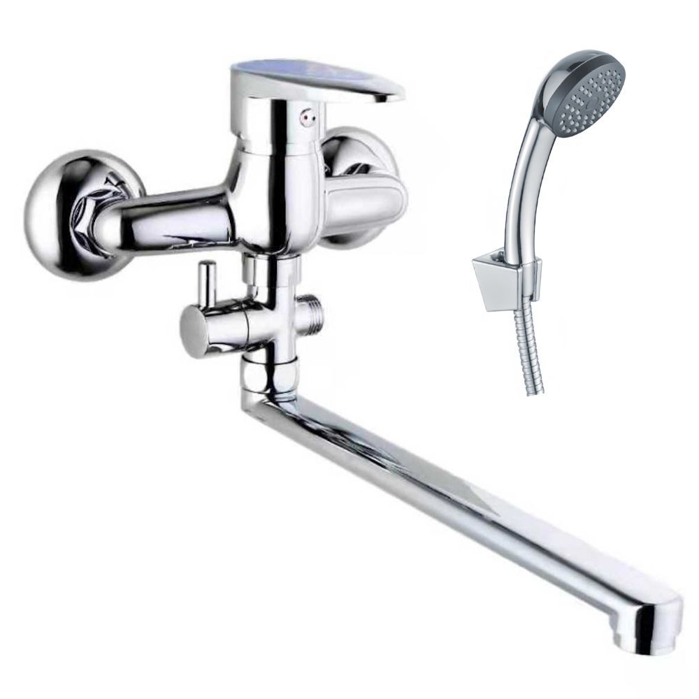 смеситель ванно-душевой с душевым гарнитуром и цветной ручкой (синяя)