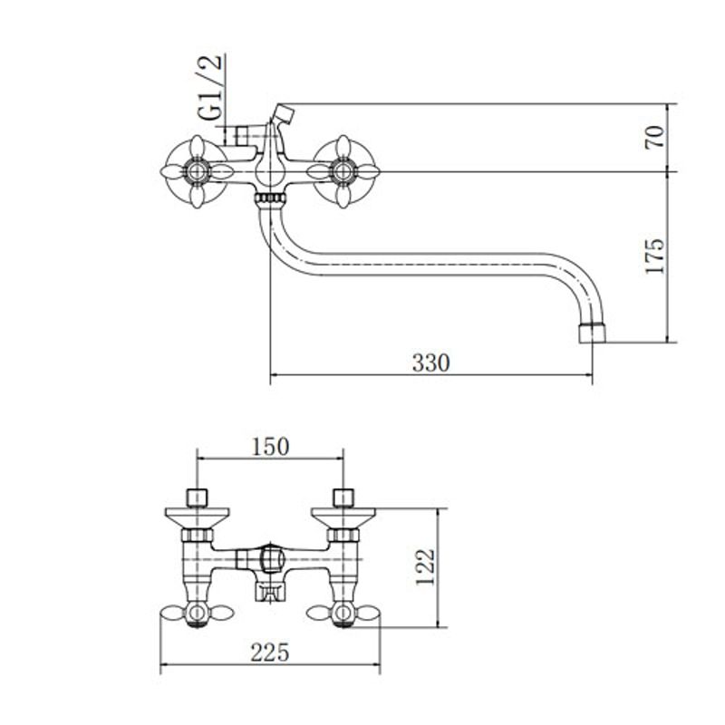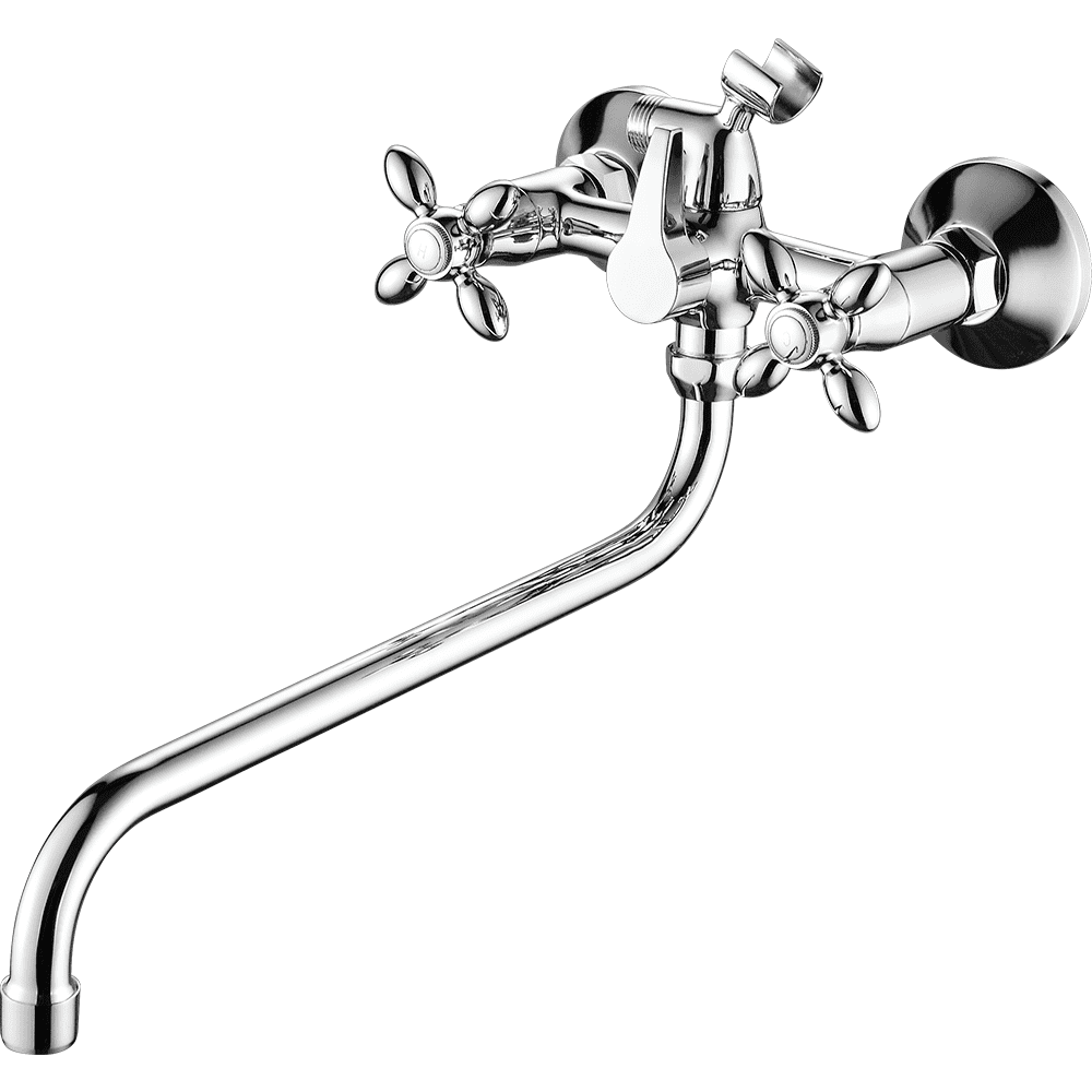 Смеситель для ванны FASHUN A2227-2, хром. Материал: латунь. Вращение излива: поворотный. Управление: вентильное. Душевой гарнитур в комплекте: да.