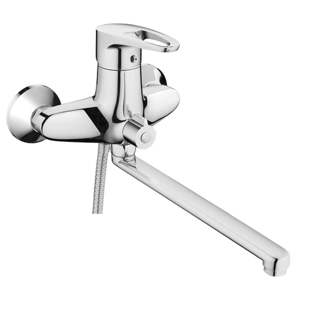 Смеситель для ванны FASHUN A2265, хром. Материал: латунь. Вращение излива: поворотный. Управление: рычажное. Душевой гарнитур в комплекте: да.