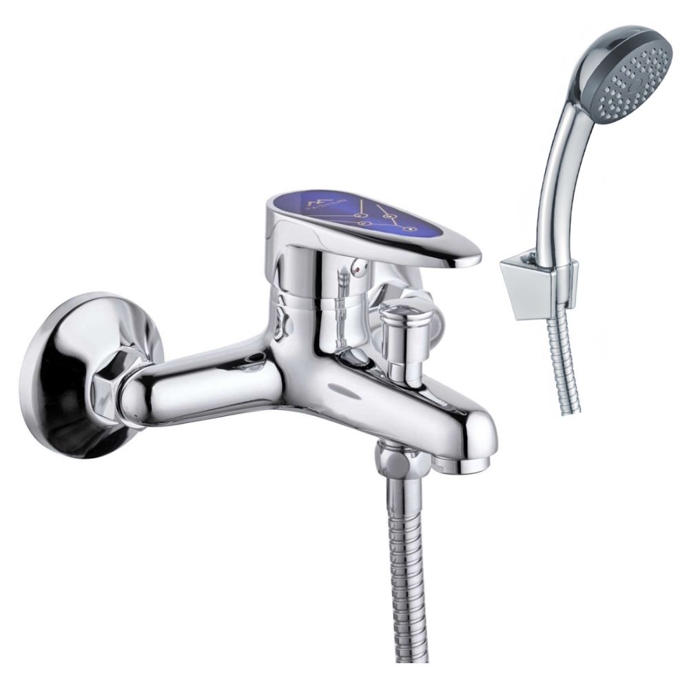 смеситель ванно-душевой с душевым гарнитуром и цветной ручкой (синяя)