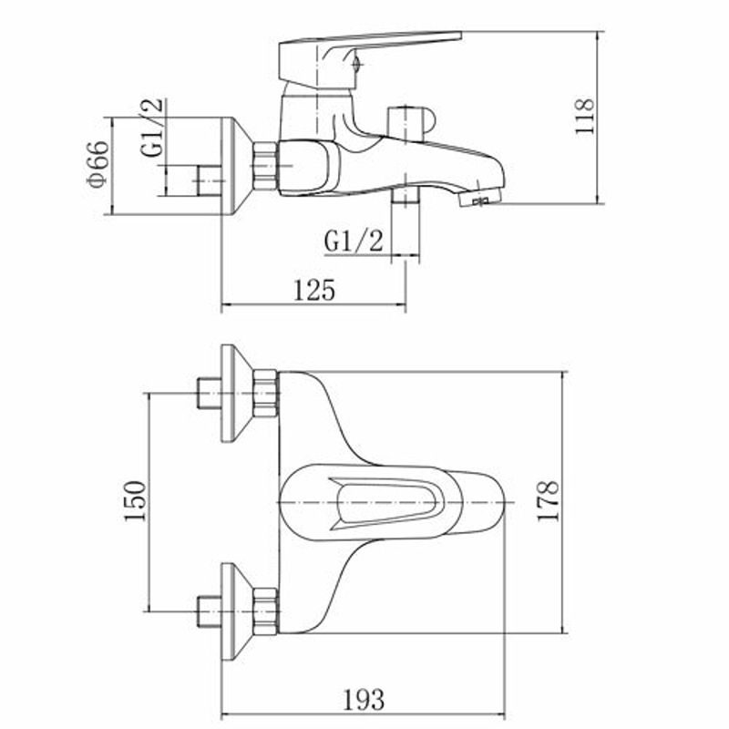 Смеситель для ванны FASHUN A3268, хром. Материал: латунь. Вращение излива: фиксированный. Управление: рычажное. Душевой гарнитур в комплекте: да.