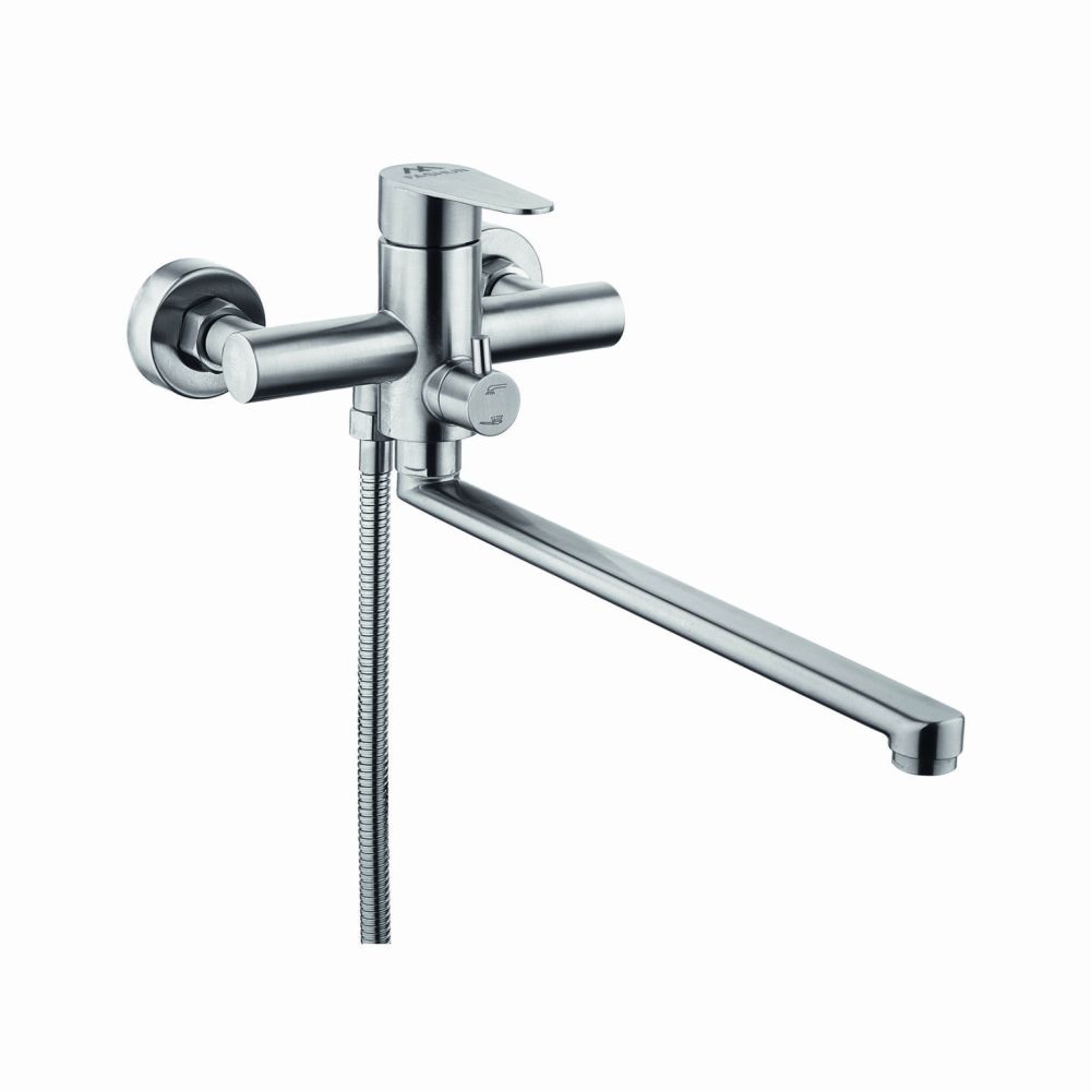 Смеситель для ванны FASHUN A52215, сатин. Материал: нержавеющая сталь. Вращение излива: поворотный. Управление: рычажное. Душевой гарнитур в комплекте: да.
