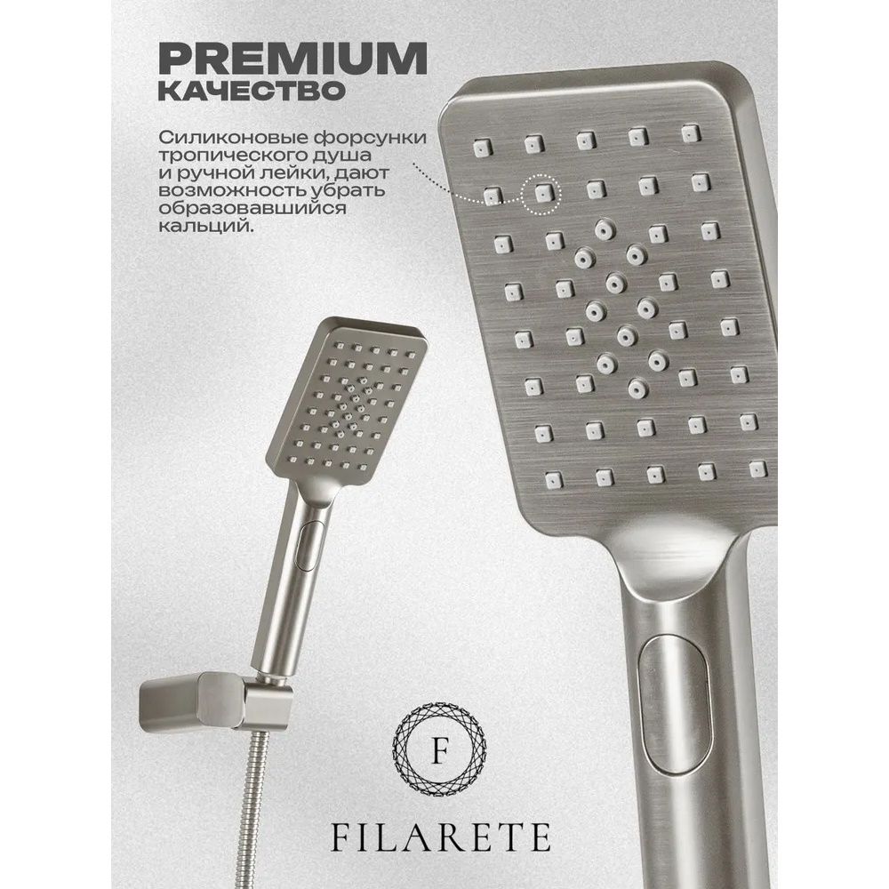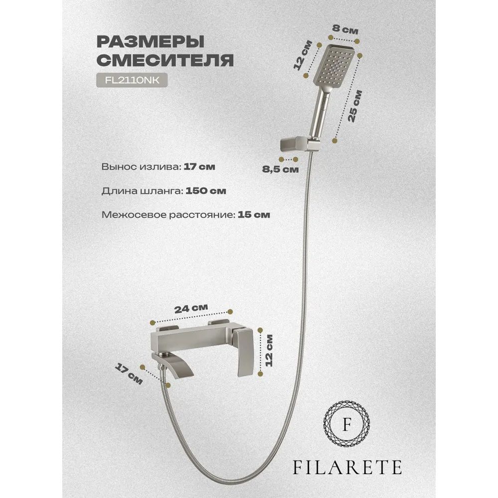 Смеситель для ванны FILARETE Waterfall FL2110NK, никель. Гарантия: 7 лет. Цвет: никель. Количество режим душевой лейки: 3.