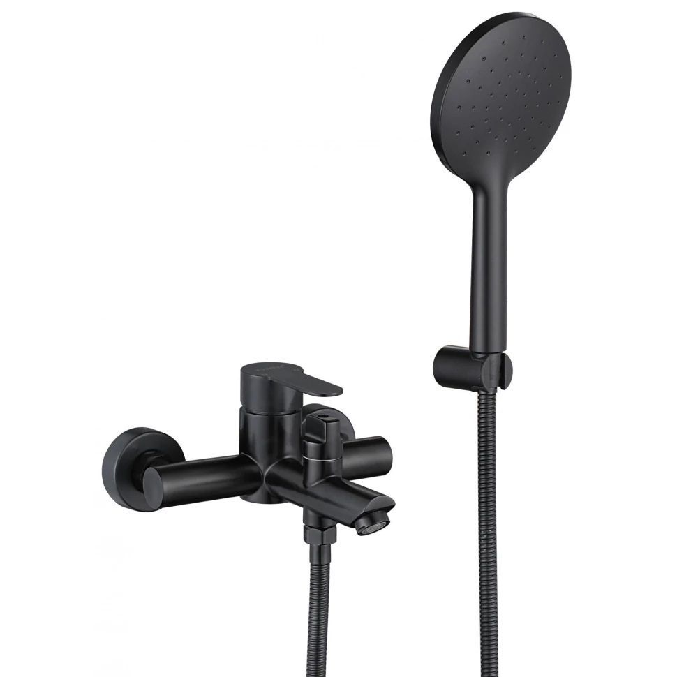 Смеситель для ванны Fmark FS8204H, черный. Душевой гарнитур в комплекте. Керамический картридж. Подводка 1/2". Оснащение: аэратор, металлическая розетка, эксцентрики, душевой шланг, душевая лейка, держатель для душевой лейки. Материал лейки: пластик. Диаметр лейки 9,8 см. Гарантия: 5 лет.