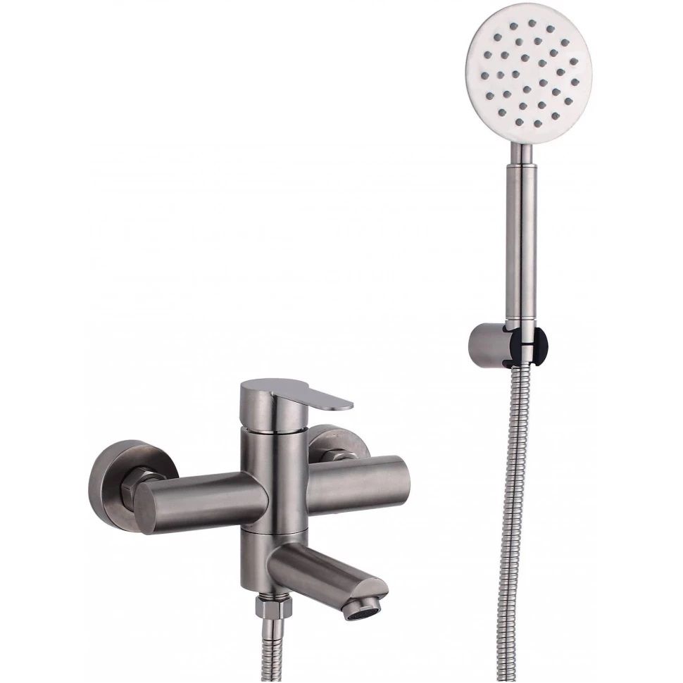 Смеситель для ванны Fmark 3004 FS8304, сатин. Душевой гарнитур в комплекте. Керамический картридж 35 мм. Подводка 1/2". Оснащение: аэратор, металлическая розетка, эксцентрики, душевой шланг, душевая лейка, держатель для душевой лейки. Материал лейки: нержавеющая сталь. Диаметр лейки 9,8 мм. Гарантия: 5 лет.