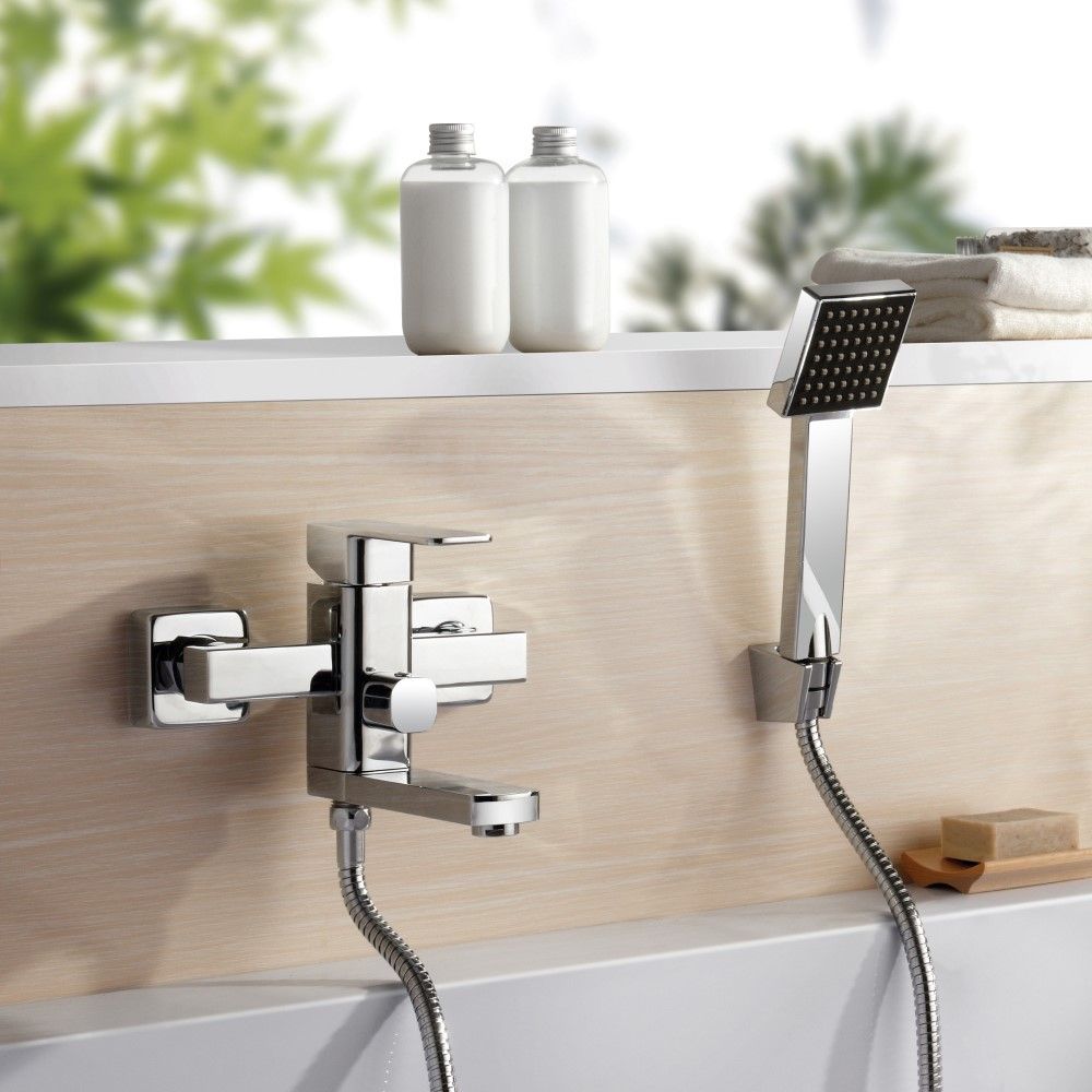 смеситель, душевая лейка, настенный держатель душевой лейки, душевой шланг, эксцентрики, декоративные отражатели |