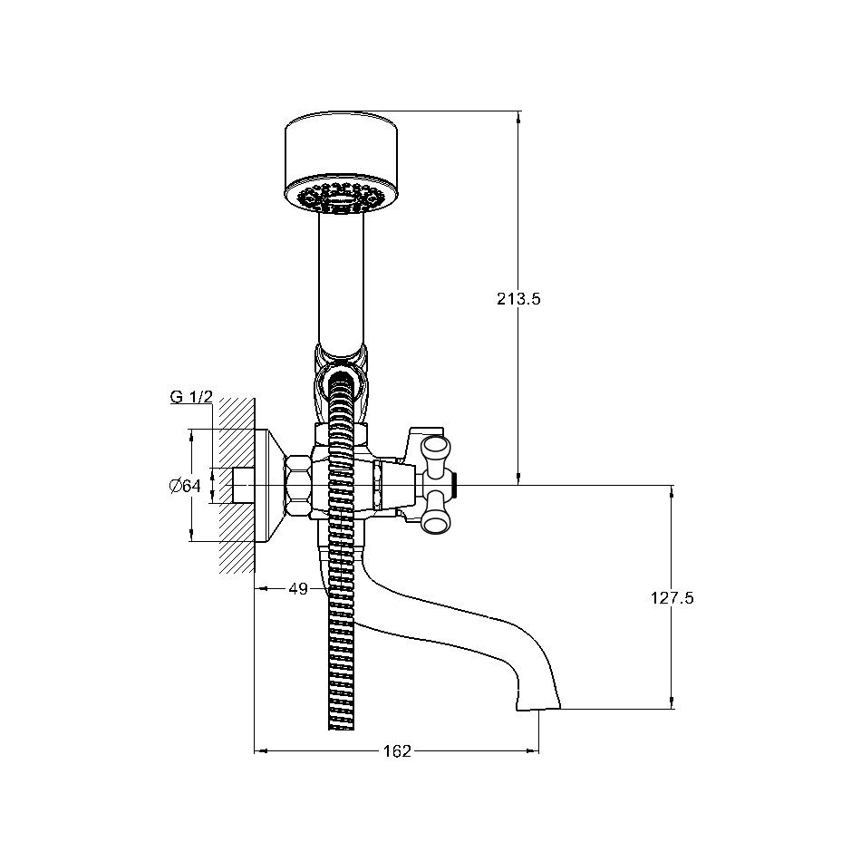 смеситель, душевая лейка, настенный держатель душевой лейки, душевой шланг, эксцентрики, декоративные отражатели |