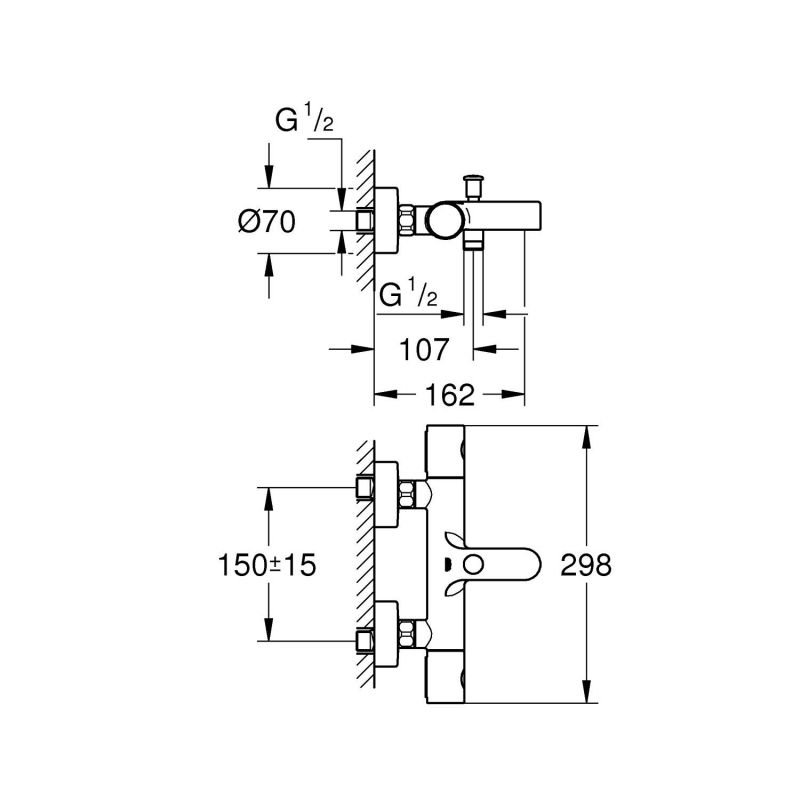 - GROHE SafeStop Plus опционно ограничитель температуры на 43°C, включен