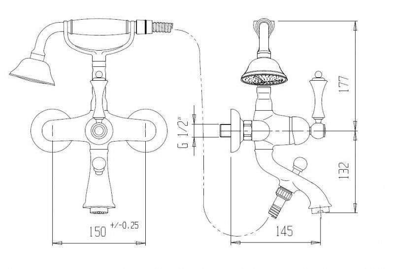 Оснащение: душевой шланг, душевая лейка, эксцентрики, аэратор, держатель для душевой лейки, дивертор