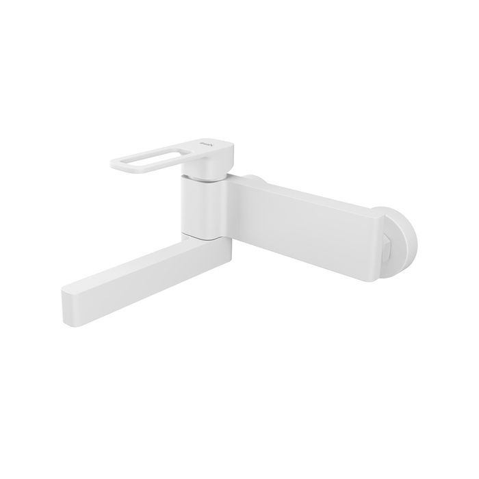 Смеситель для ванны Slide в актуальном матовом белом цвете со складным изливом — стильное функциональное решение без лишних деталей: подойдет и для ванны, и для душевой кабины. Отверстие-петля на ручке выполняет декоративную и при этом практичную роль — ее легко захватить даже намыленной рукой и отрегулировать напор или температуру. Без душевых аксессуаров в комплекте.