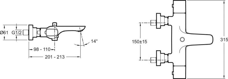 Смеситель для ванны Jacob Delafon Aleo E72286-CP с термостатом.