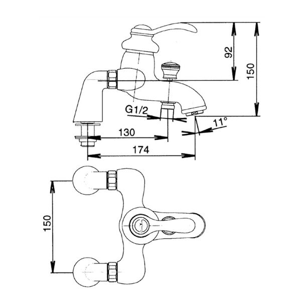 Смеситель с фиксированным изливом, монтируемый в два отверстия, отлично подходит для различных интерьеров ванной комнаты в стиле ретро.