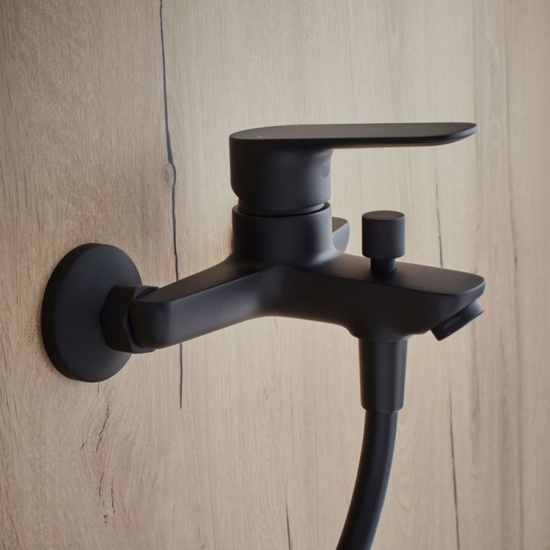 Выполненный из качественной латуни смеситель дополнительно защищен черным покрытием. Керамический картридж надежно запирает напор воды, способствует защите от образования водного камня.