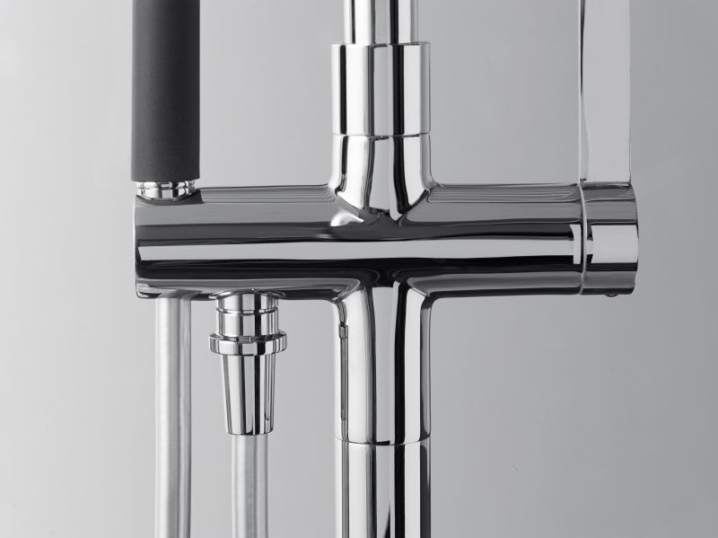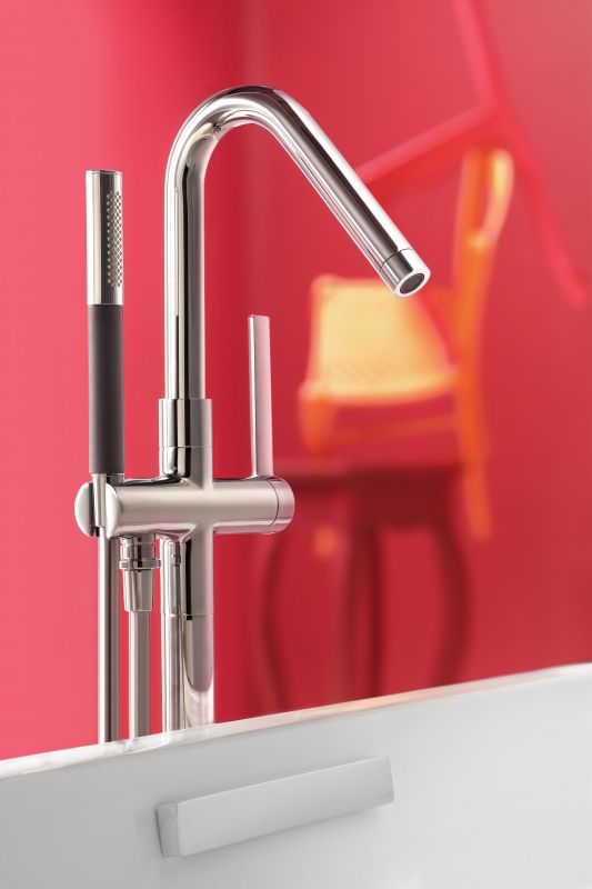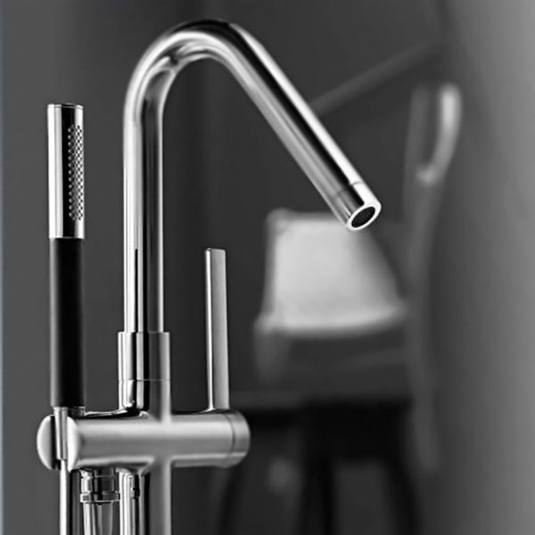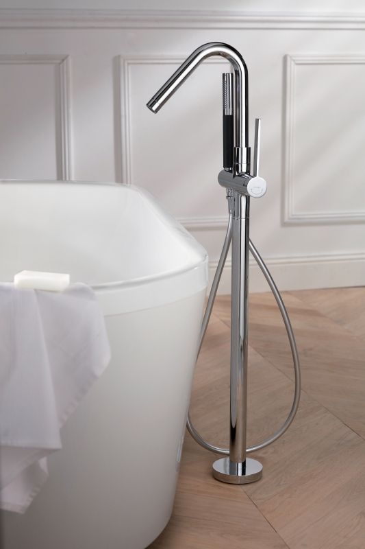 - Напольный смеситель для ванны Jacob Delafon Stillness E97344-CP однорычажный, с аэратором, с душевым гарнитуром, монтируемый в одно отверстие.