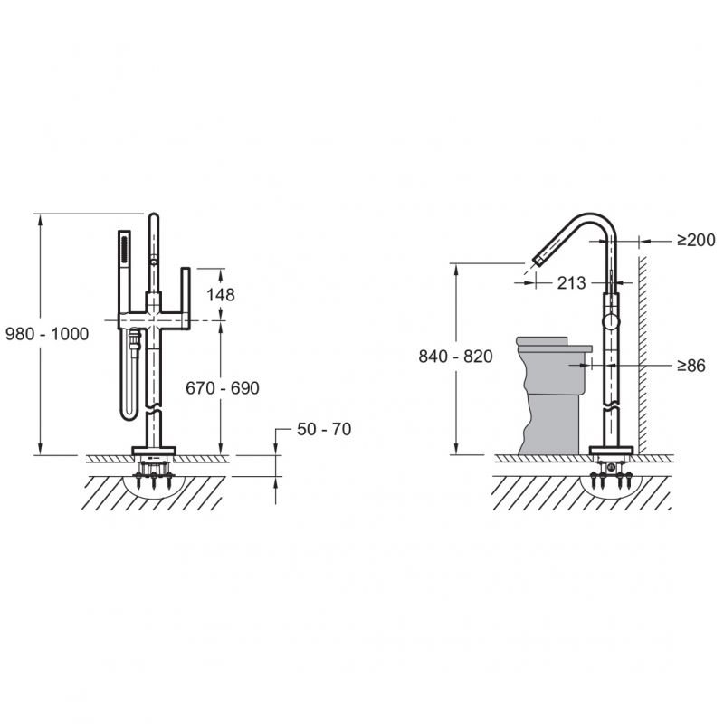 - Высота смесителя: 98-100 см.