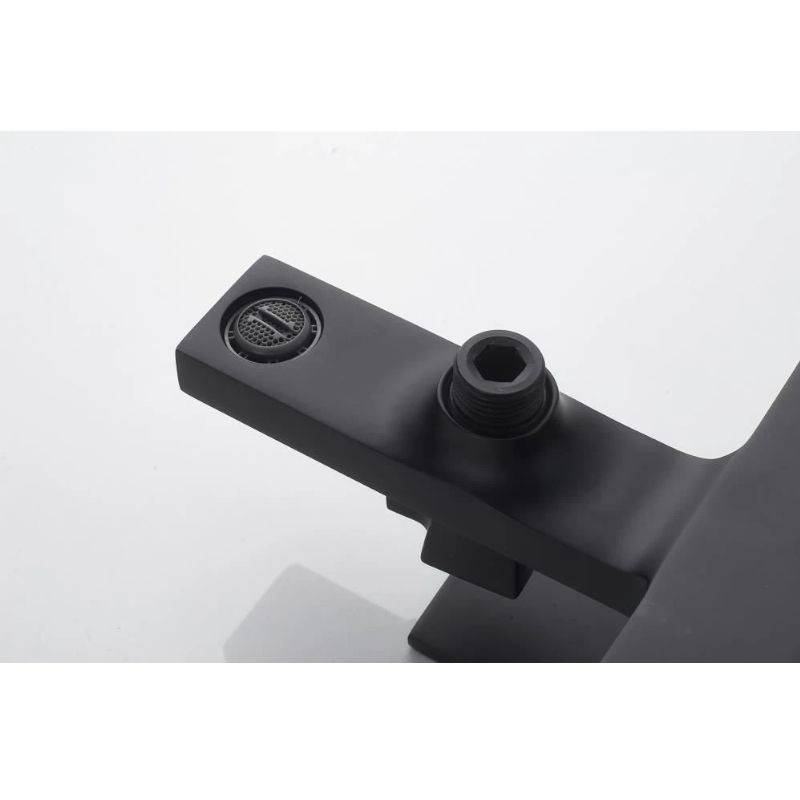 Излив этого смесителя для ванны оборудован аэратором, который помогает в экономии воды. Внутри аэратора воздух смешивается с водой, что образует насыщенную пузырьками струю, которая рассеивается на множество мелких потоков. Это делает струю более мягкой и объёмной, снижает разбрызгивание воды.