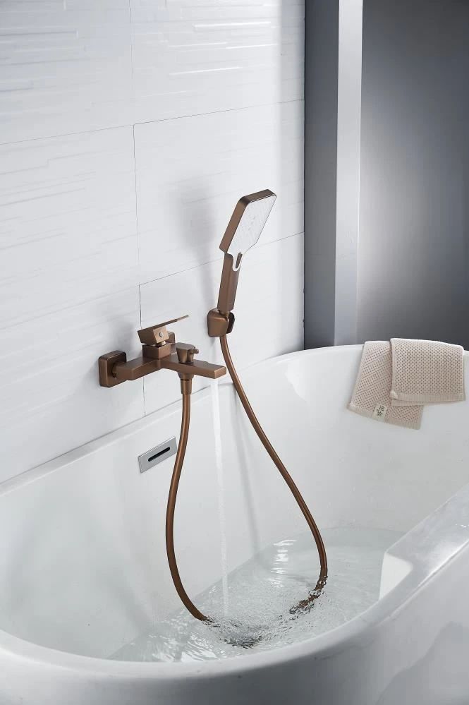 Смеситель для ванны с душевой лейкой и коротким изливом позволяет эффективно расходовать воду и контролировать её поток. Благодаря простому рычажному механизму, вы сможете легко регулировать температуру и напор воды. Данная модель также включает душевую лейку, что добавляет комфорт в ежедневное пользование.