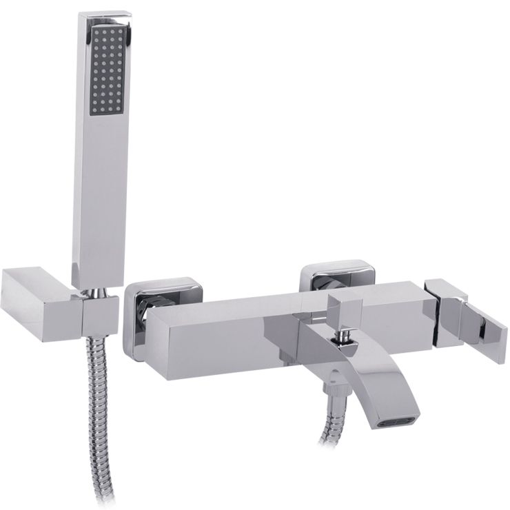 - Душевой гарнитур: ручной душ, металлический шланг, настенный держатель.