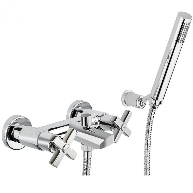 - Душевой гарнитур: ручной душ, металлический шланг, настенный регулируемый держатель.