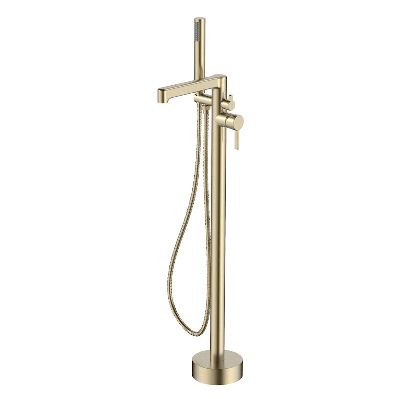 Этот отдельностоящий смеситель станет настоящим акцентом в вашей ванной комнате, благодаря своему корпусу из латуни с элегантным золотым покрытием. Стационарный излив и скрытый аэратор обеспечивают стабильную и комфортную подачу воды, а современный картридж диаметром 35 мм гарантирует надежность в эксплуатации. В комплекте вы найдете монтажный набор, что делает установку легкой и быстрой. Фиксируемый дивертор и держатель верхнего душа на корпусе добавляют удобства в использовании.