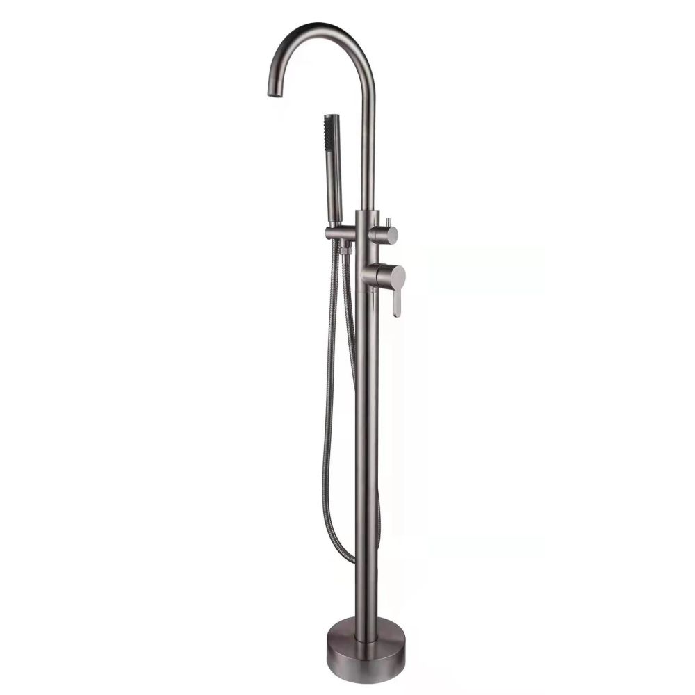 Смеситель для ванны Savol напольный S-SUS8801, сатин. Душевой гарнитур в комплекте. Количество режимов лейки: 1. Керамический картридж. Подводка 1/2". Оснащение: аэратор, душевой шланг, душевая лейка, держатель для душевой лейки. Гарантия: 5 лет.