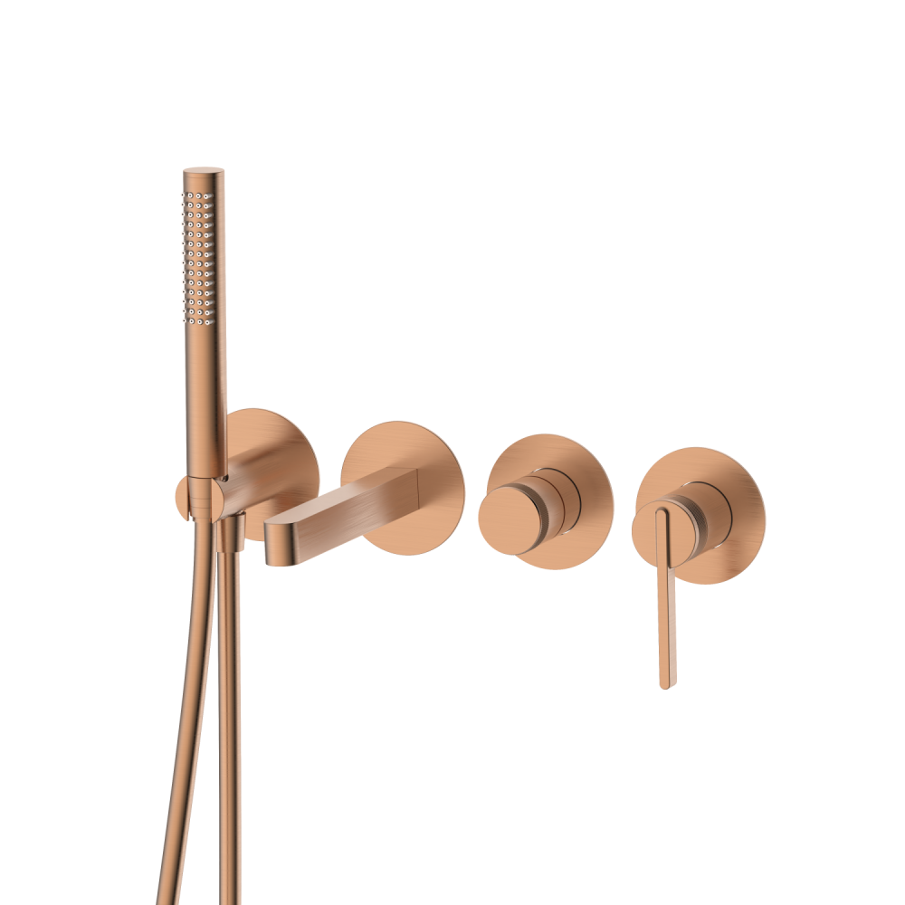смеситель: внутренний блок смесителя, ручка 1шт, излив 1шт, переключатель 1шт, держатель душевой лейки 1шт, душевая лейка 1-режим, шланг душевой 1,5м PVC, паспорт изделия, брендовый пакет |