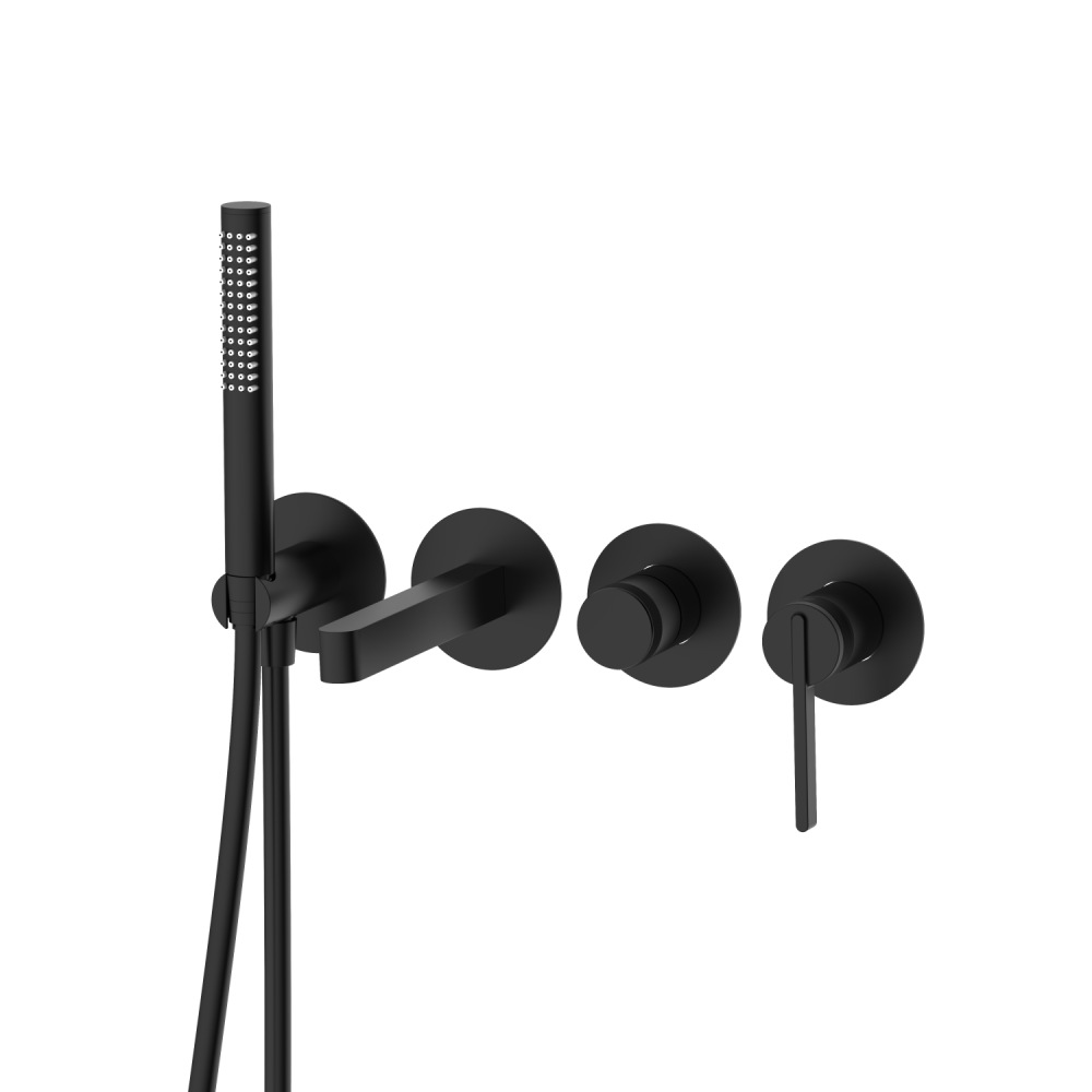 смеситель: внутренний блок смесителя, ручка 1шт, излив 1шт, переключатель 1шт, держатель душевой лейки 1шт, душевая лейка 1-режим, шланг душевой 1,5м PVC, паспорт изделия, брендовый пакет |