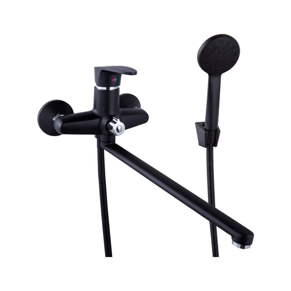 Смеситель для ванны PLstart PL2205-7, чёрный. Материал: пластик/сталь. Вращение излива: поворотный. Управление: рычажное. Душевой гарнитур в комплекте: да.