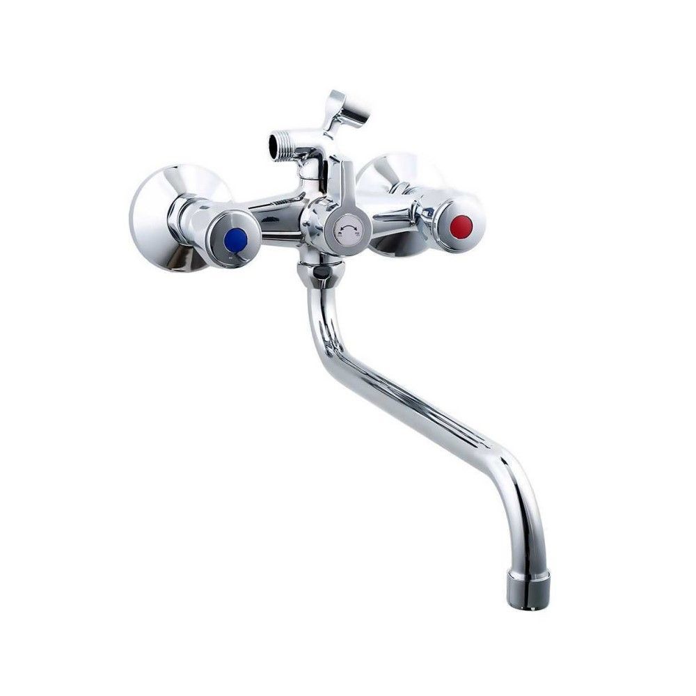 Смеситель для ванны PLstart PL2210, хром. Материал: пластик/сталь. Вращение излива: поворотный. Управление: вентильное. Душевой гарнитур в комплекте: да.