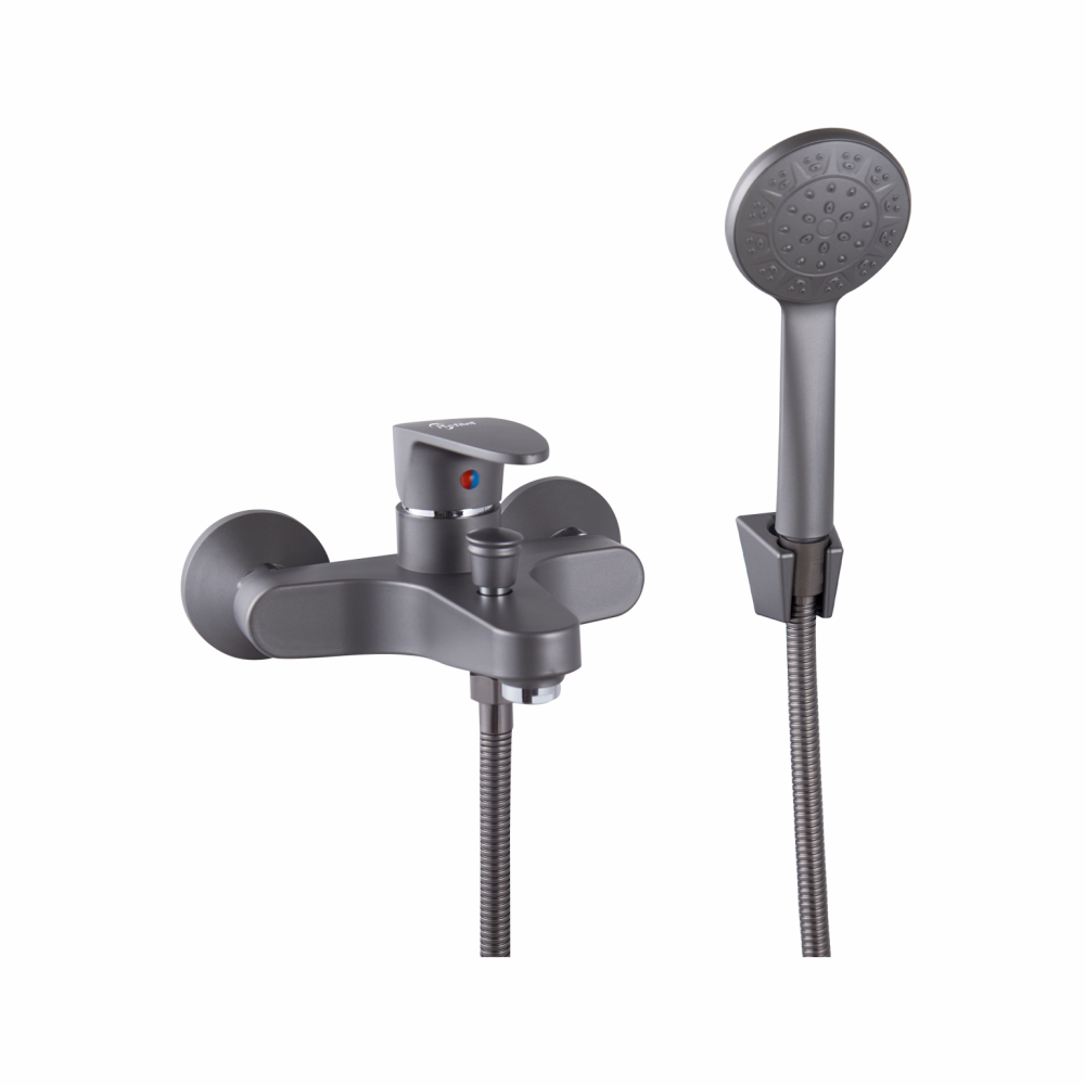 Смеситель для ванны PLstart PL3205-17, графит. Материал: пластик/сталь. Вращение излива: фиксированный. Управление: рычажное. Душевой гарнитур в комплекте: да.