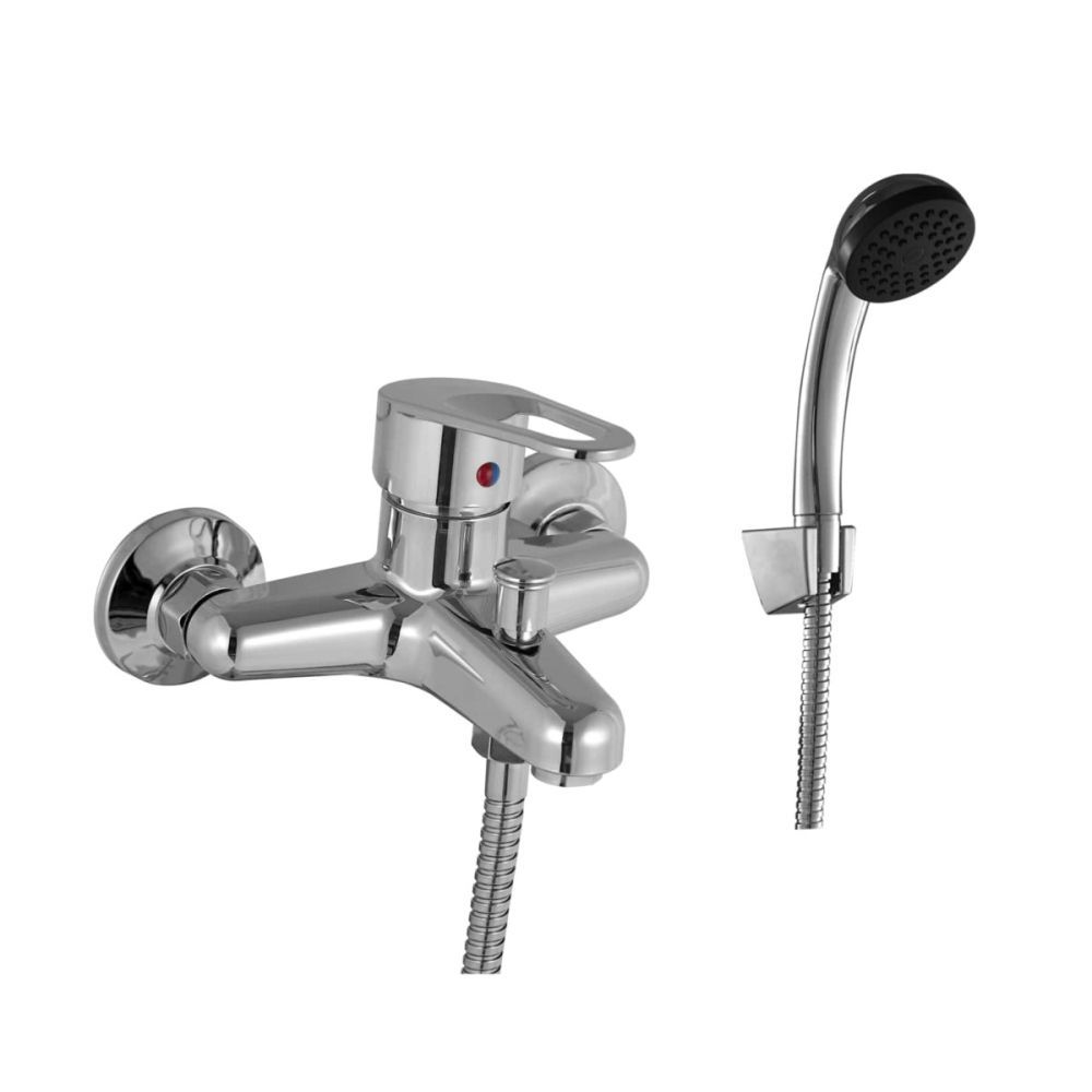 Смеситель для ванны PLstart PL3206, хром. Материал: пластик/сталь. Вращение излива: фиксированный. Управление: рычажное. Душевой гарнитур в комплекте: да.