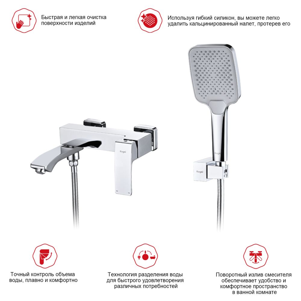 смеситель, шланг, душевая лейка, держатель душевой лейки, эксцентрики, отражатели |