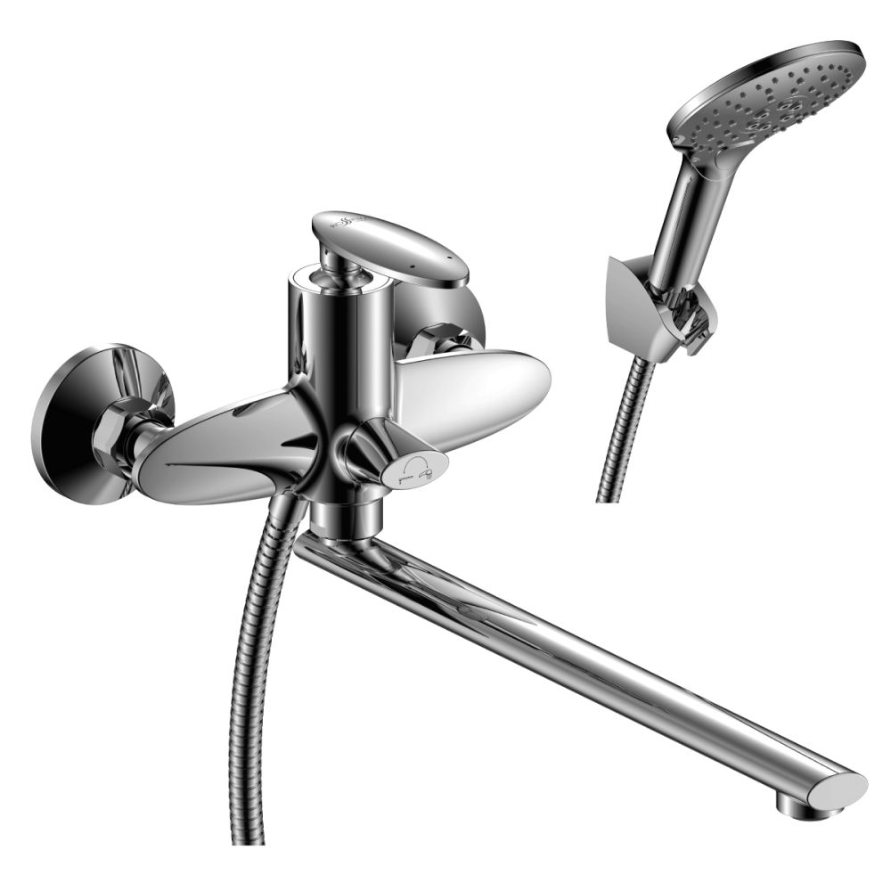 Смеситель Rossinka RS35-32PC для ванны универсальный одноручный с плоским изливом 35 см.