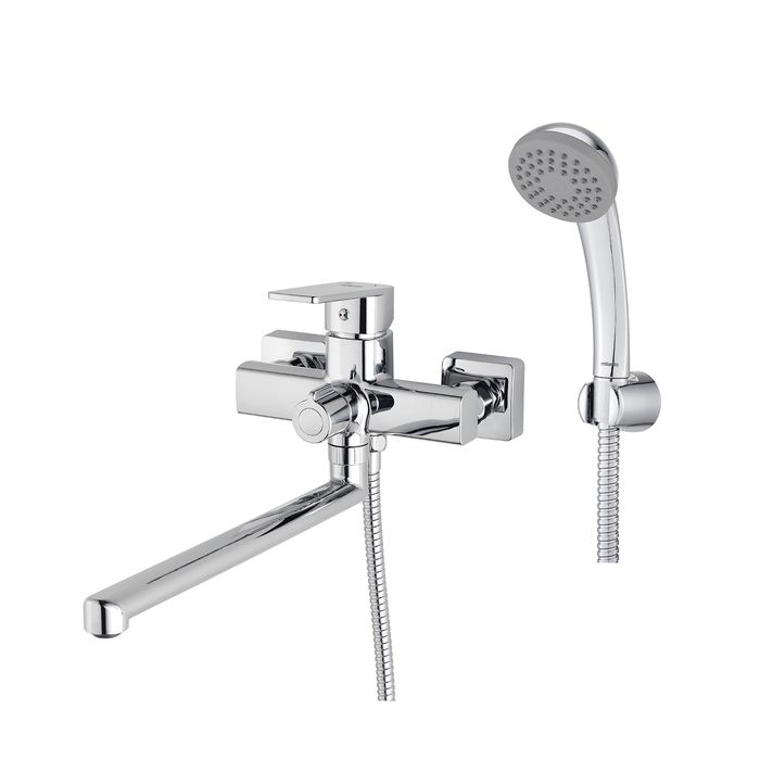 Смеситель Poli создан под проекты современных интерьеров: умеренно геометричные линии модели подойдут к сантехнике и мебели, как квадратных, так и скругленных форм. С длинным (29 см) изливом использовать пространство ванной получается намного эффективней, а поворотный излив позволяет охватить большую ее площадь.