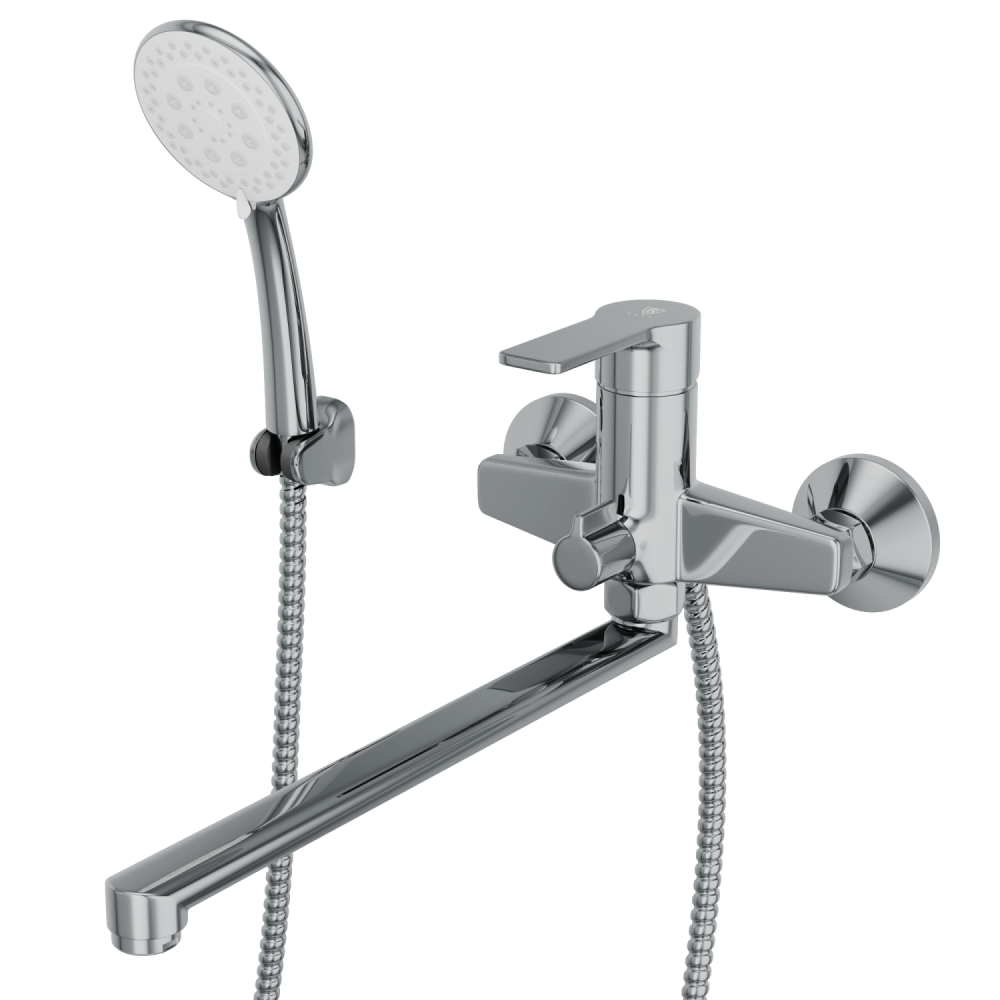 смеситель для ванны и душа, душевая лейка, душевой шланг с латунной гайкой, держатель душевой лейки, универсальная присоединительная группа для установки на вертикальную поверхность, эксцентрики, индивидуальный пакет, паспорт, гарантийный талон. |