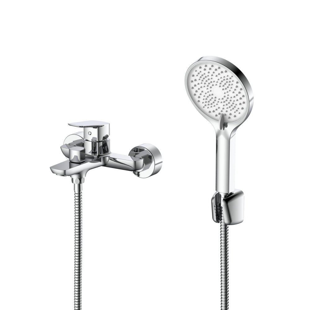 смеситель, эксцентрики-2шт, декоративная шайба (отражатель)-2шт, шланг душевой 1,5м PVC, лейка душевая 3 режима, держатель душевой лейки, паспорт изделия, брендовый пакет |