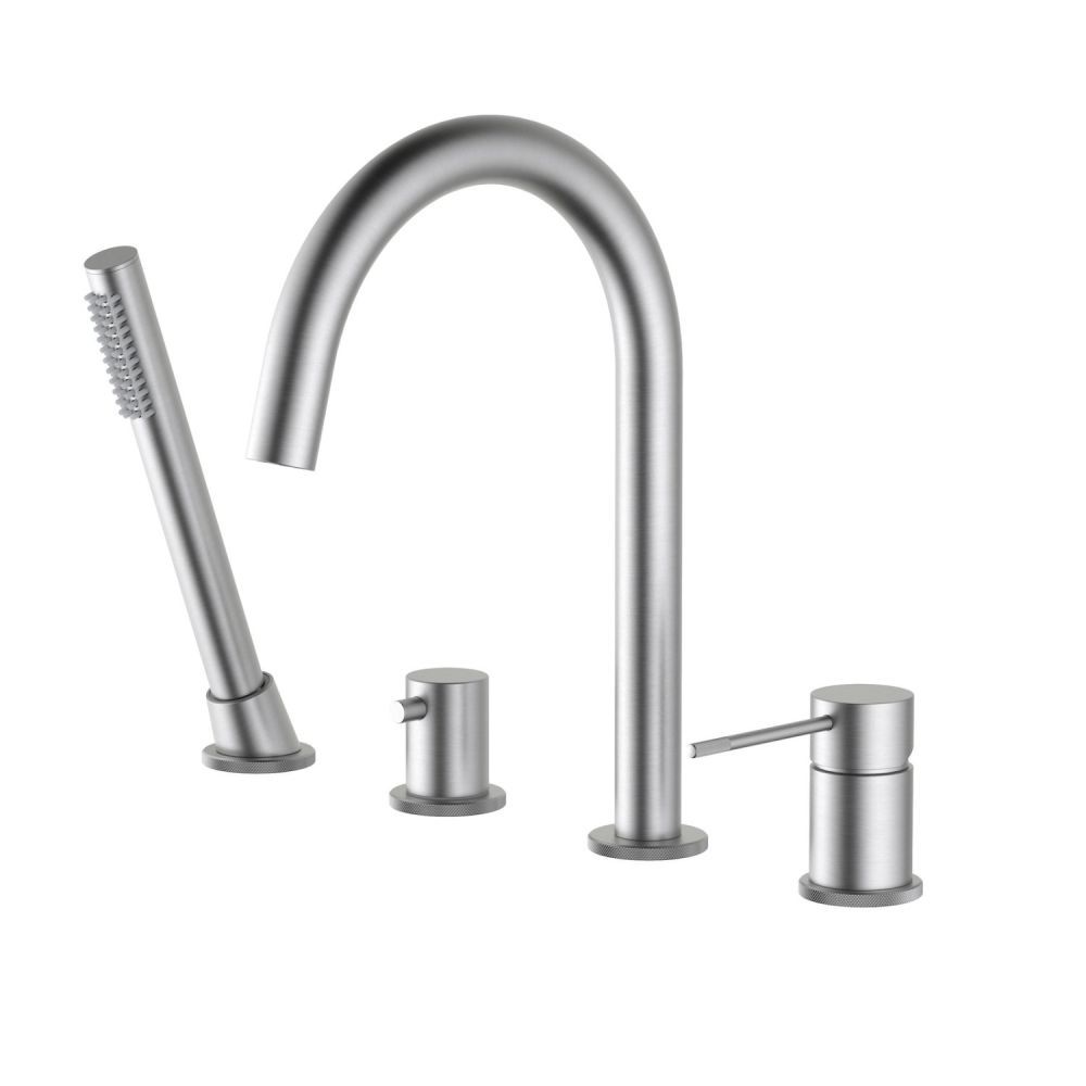 Смеситель врезной - 1 шт. Излив врезной (латунный) - 1 шт. Блок управления режимами, врезной - 1 шт. Держатель ручной лейки, врезной - 1 шт. Ручная лейка, (латунь) - 1 шт. Шланг душа 1,5 м - 1 шт. Инструкция - 1 шт. |