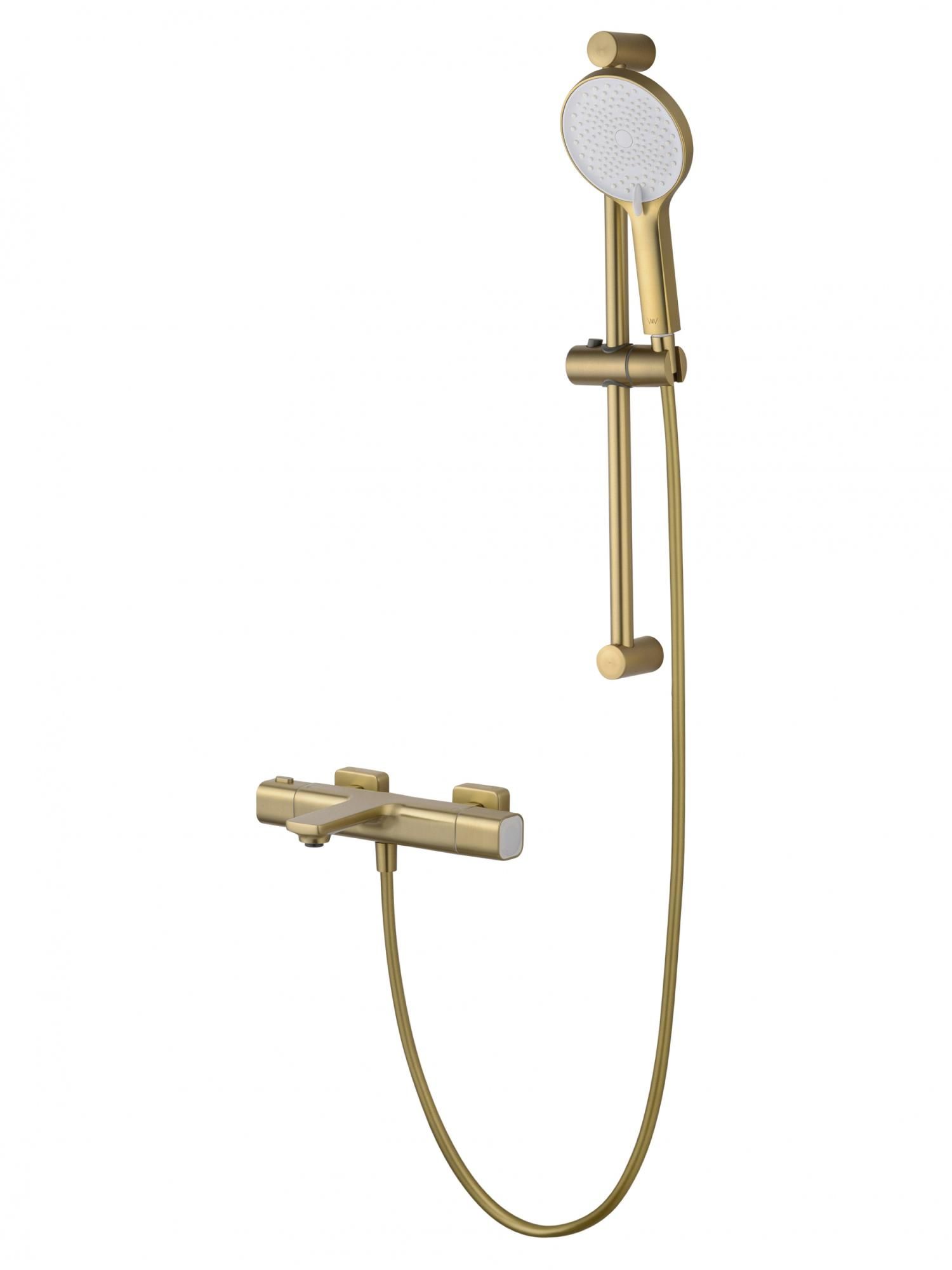 Смеситель для ванны с душевым гарнитуром и термостатом WONZON & WOGHAND SOLID, Брашированное золото (WW-C2011-A-BG)