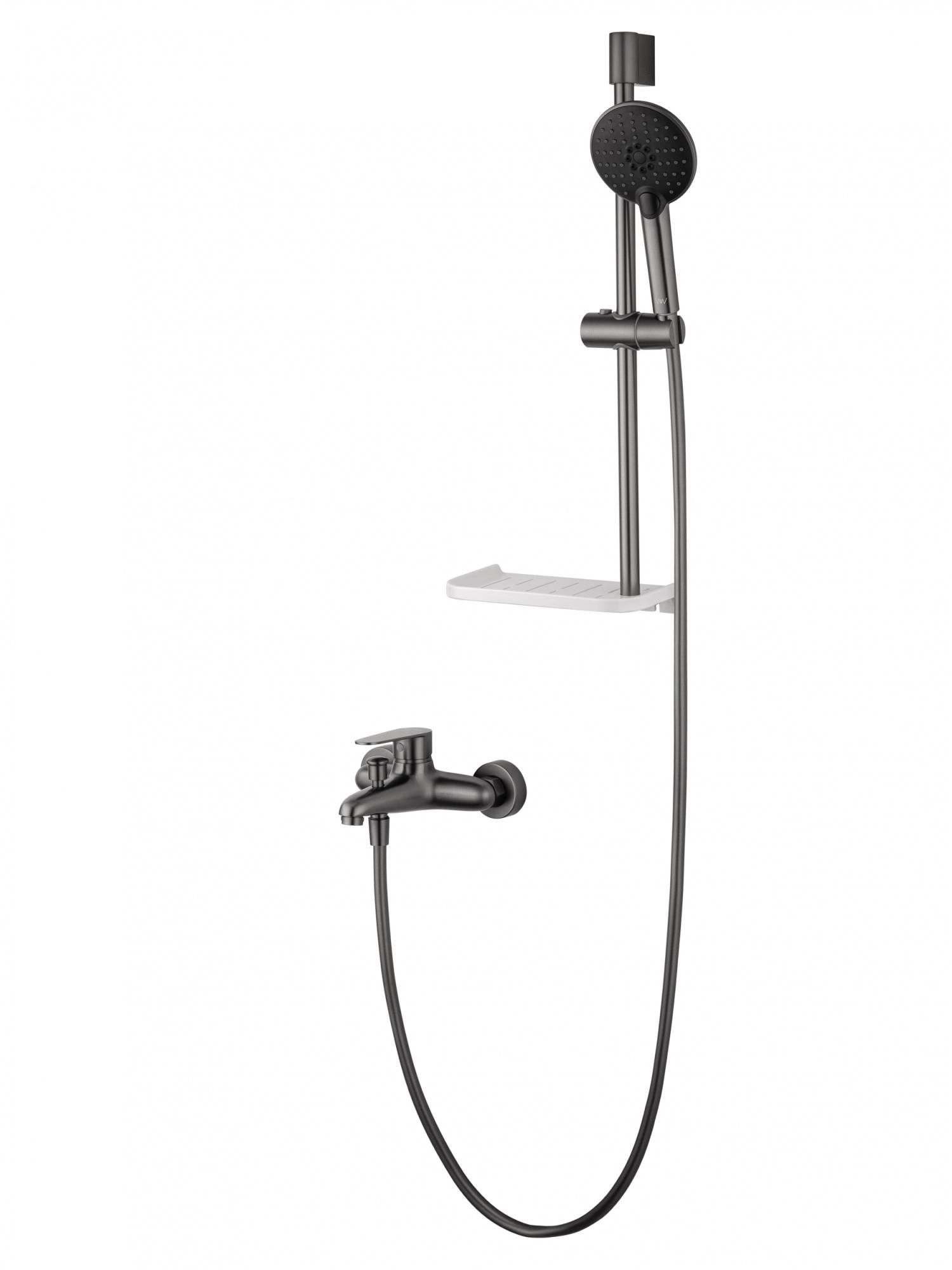 Смеситель для ванны с душевым гарнитуром WONZON & WOGHAND ALFA, Темный графит (WW-AE3201-BGG)