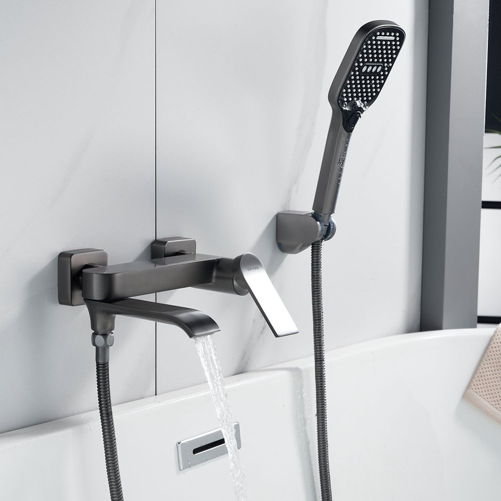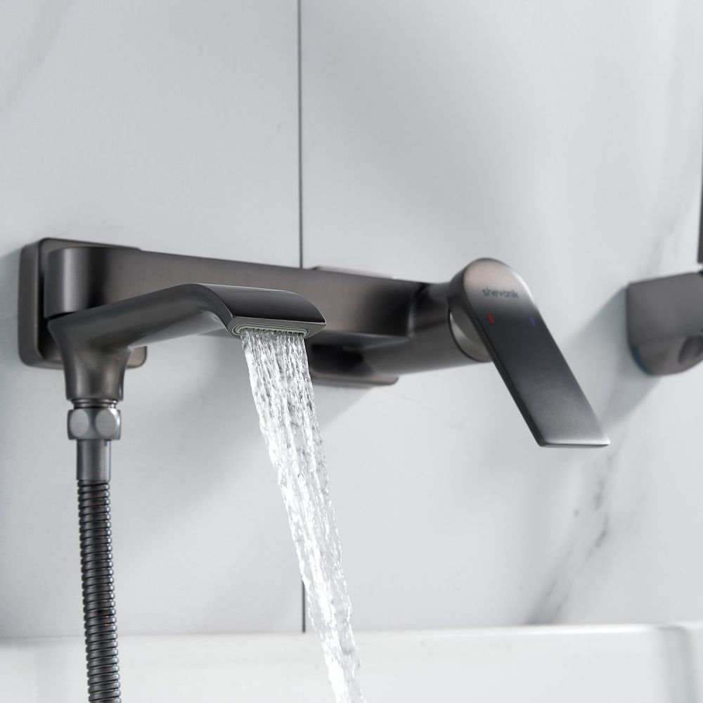 Смеситель для ванны Shevanik S4102 в цвете "оружейная сталь" — идеальное сочетание стиля и функциональности. Изготовленный из высококачественной латуни, он обладает классическим настенным монтажом и плавными линиями форм. Компактный излив позволяет наполнять ванну, а также служит переключателем на ручной душ в сложенном положении. Трёхрежимная душевая лейка из ABS-пластика обеспечивает комфортное использование. Душевой шланг длиной 150 см в металлической оплётке добавляет удобства. Гарантия на этот смеситель составляет 5 лет, что говорит о его надёжности и долговечности.