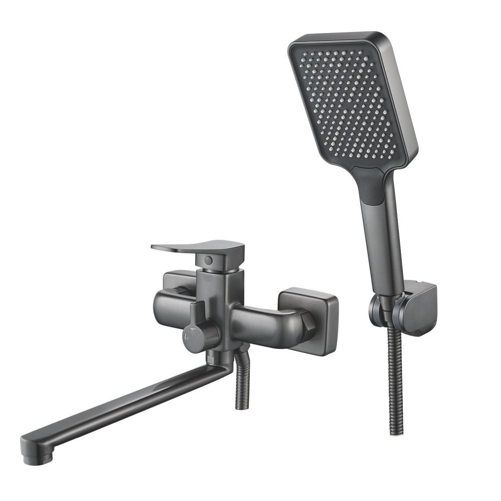 Смеситель для ванны Shevanik S9902T — стильное и функциональное решение для вашей ванной комнаты. Он имеет угловатую форму и изготовлен из высококачественной латуни, что гарантирует его прочность и долговечность. Рычажное управление и керамический картридж обеспечивают плавное и точное регулирование температуры воды.