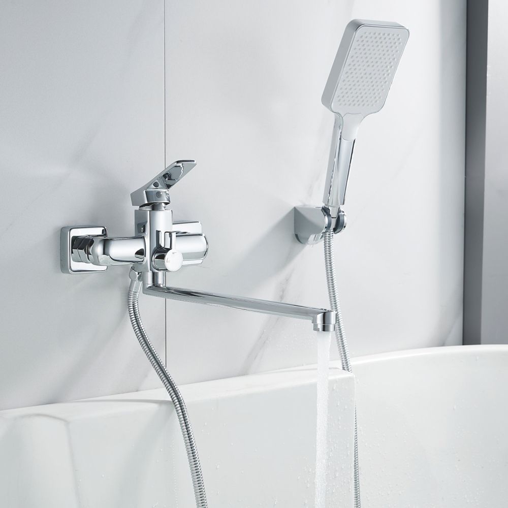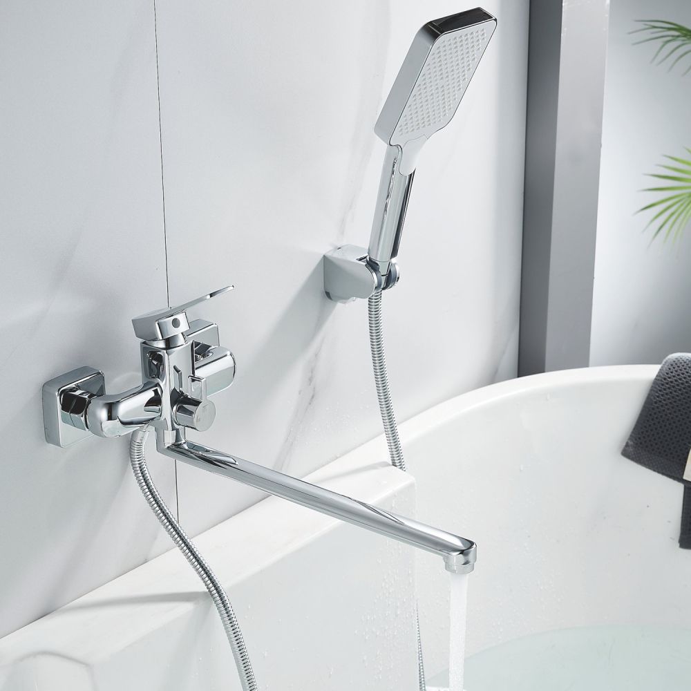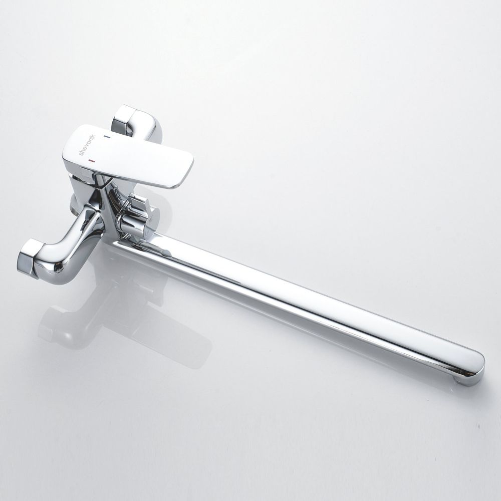 Смеситель для ванны Shevanik S9922 - это стильное и функциональное решение для вашей ванной комнаты. Угловатая форма смесителя прекрасно сочетается с любым интерьером, а длинный поворотный излив с аэратором обеспечивает комфорт при использовании.